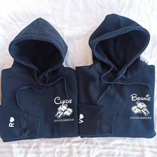 Bonnie and Clyde Matching Hoodies or Sweatshirts - Custom Embroidered Couple Set