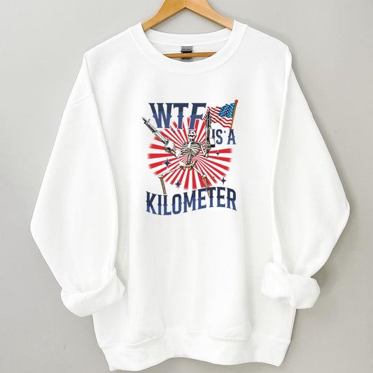 Wtf Is A Kilometer Funny Skeleton 4th of July Meme Cringey USA Unisex T-Shirt