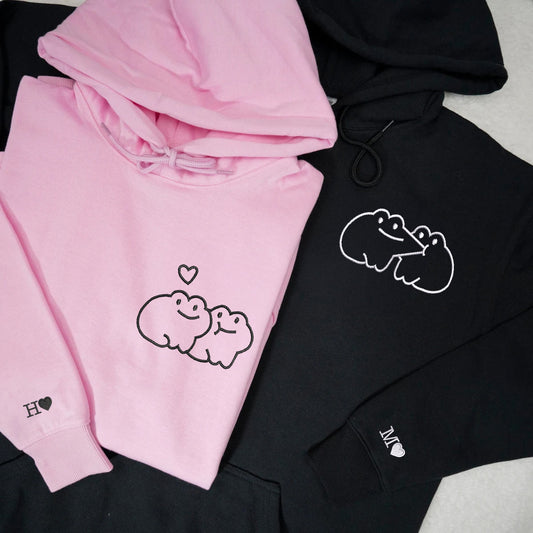 Kissing Frog Matching Hoodies for Couples - Custom Embroidered Sweatshirts