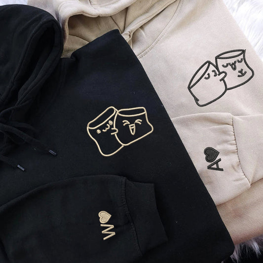 Marshmallow Love Matching Hoodies for Couples - Custom Embroidered Sweatshirts