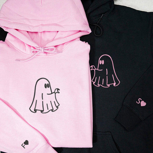 Ghost Cute Hand Matching Hoodies for Couples - Custom Embroidered Couple Sweatshirts