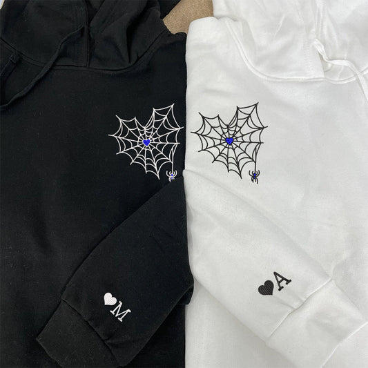 Heart Spider Web Custom Embroidered Matching Hoodies For Couples