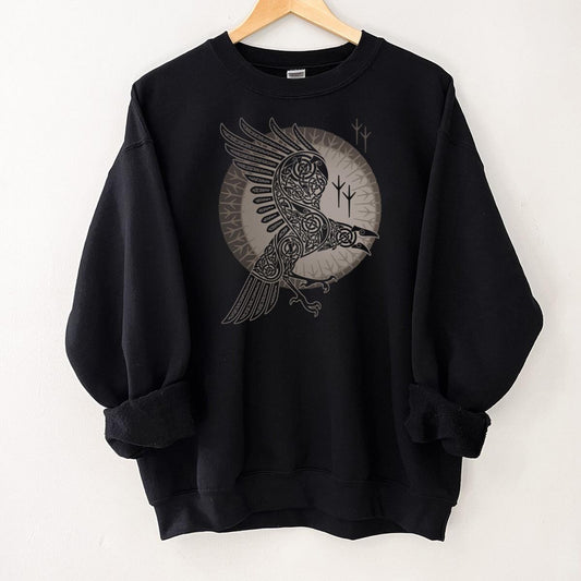 Celtic Raven Graphic T-Shirt Viking Mythology Norse Runes Tee